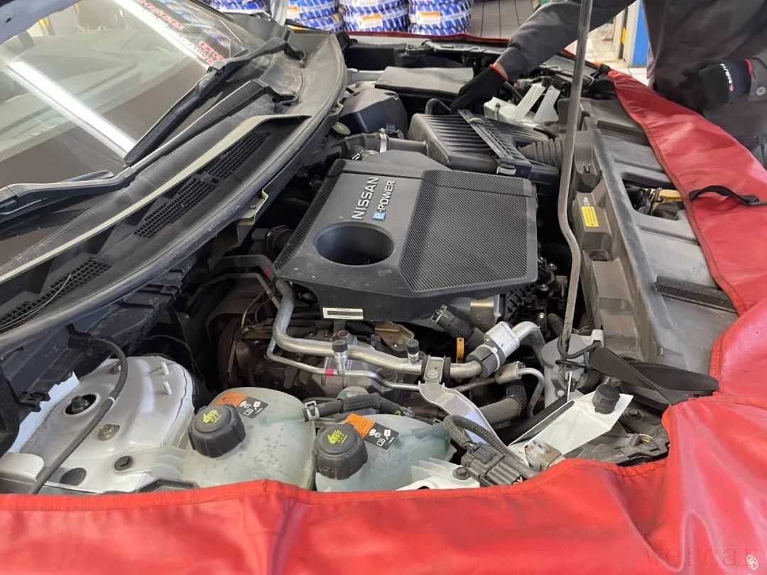 一辆日产奇骏进厂,目的是保养发动机。从外观来看,这辆奇骏有些特别,再仔细一看才发现,这辆奇骏是一款混动车型。