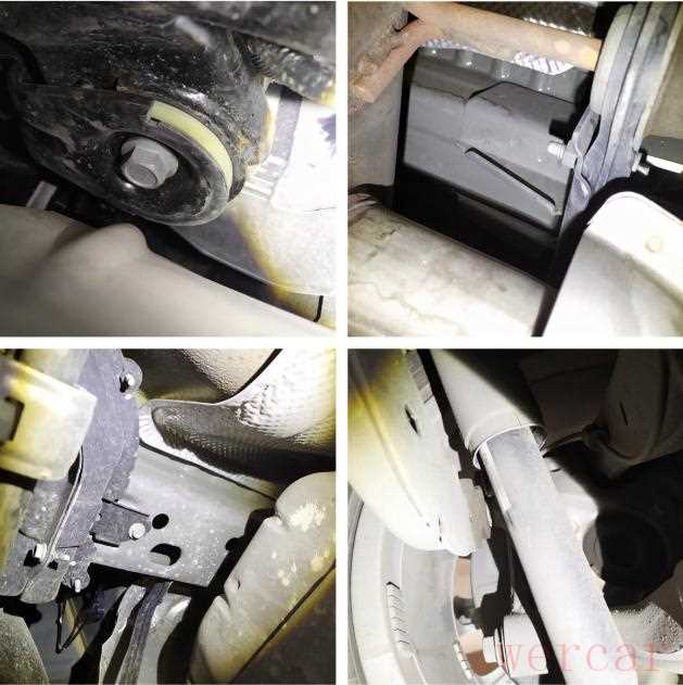 底盘结构件部分检测下来也没什么问题,副车架固定螺丝无拆卸,后纵梁无变形钣金修复痕迹,减震器也没有渗油拆卸。