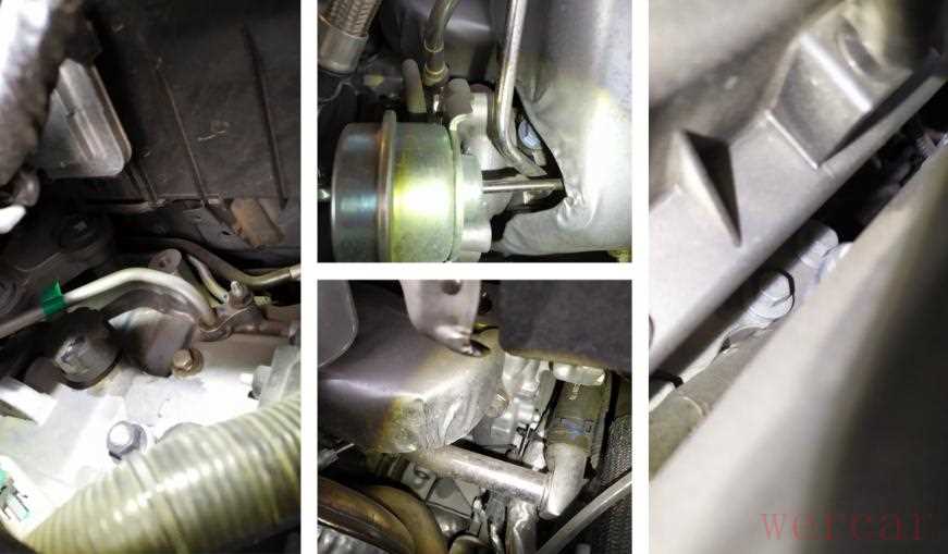 接着咱们开始检测机械部分,如上图所示,气门室盖垫无拆卸和渗油痕迹,发动机和变速箱支架固定螺丝也没有动过,涡轮增压器无拆卸、无渗漏,水箱水管也没有出险渗液和橡胶老化的现象,发动机周围附件均无拆卸痕迹。