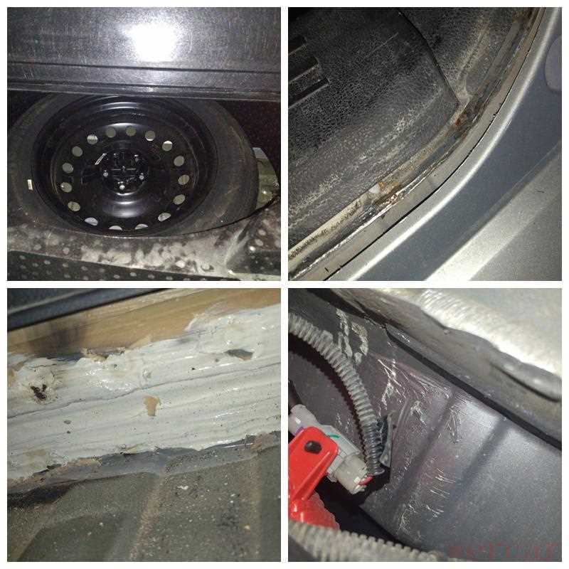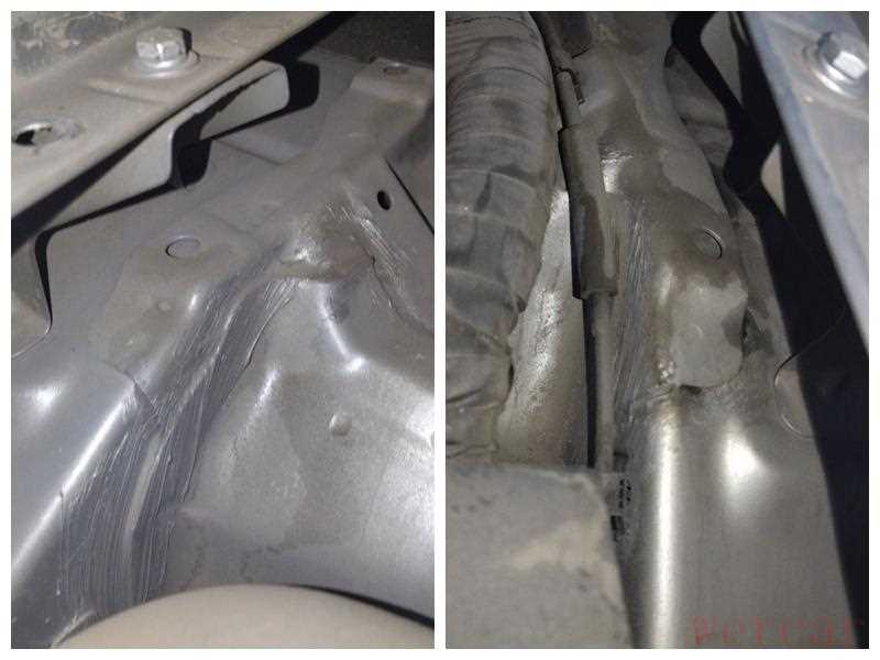 看看后边,后防撞梁更换,左后纵梁没事,右后纵梁存在敲打过的痕迹,仔细看还是有点变形!看来追尾事故主要来自右后方,而且撞的不轻!事故车又加了一条铁证!