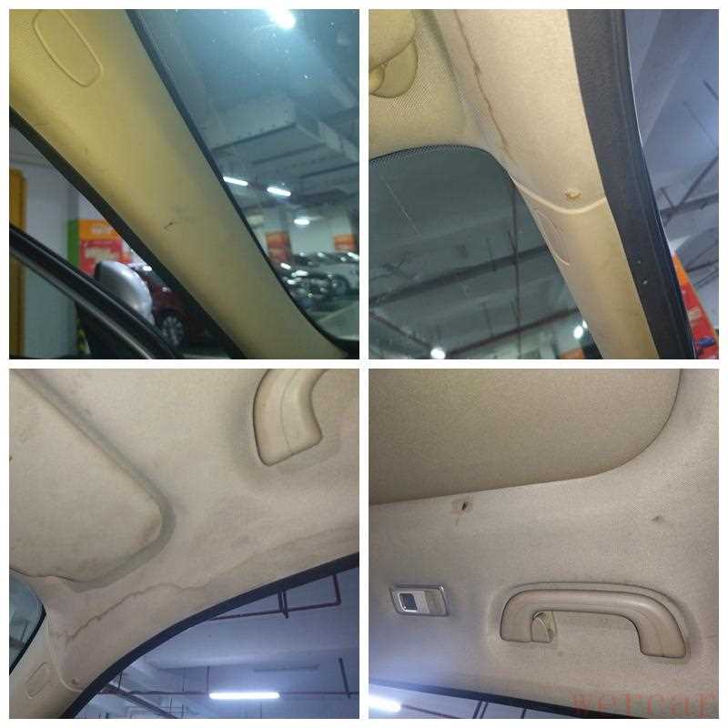 A柱饰板颜色都泛黄了,顶棚还有各种脏污水印!而且作为一个资深烟民,麦糠刚进到车内的时候就闻到了一股熟悉的烟味,难道顶棚变色是长期抽烟导致的?顶棚有过清洗,只是这清洗是用洗洁精洗的吧,泡沫都没洗干净,留下的水痕太明显了!