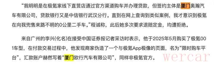 "消费者质疑:" 一些消费者反映,他们购买的极氪汽车里程数远高于零公里,甚至出现了磨损痕迹,与“零公里”宣传不符。