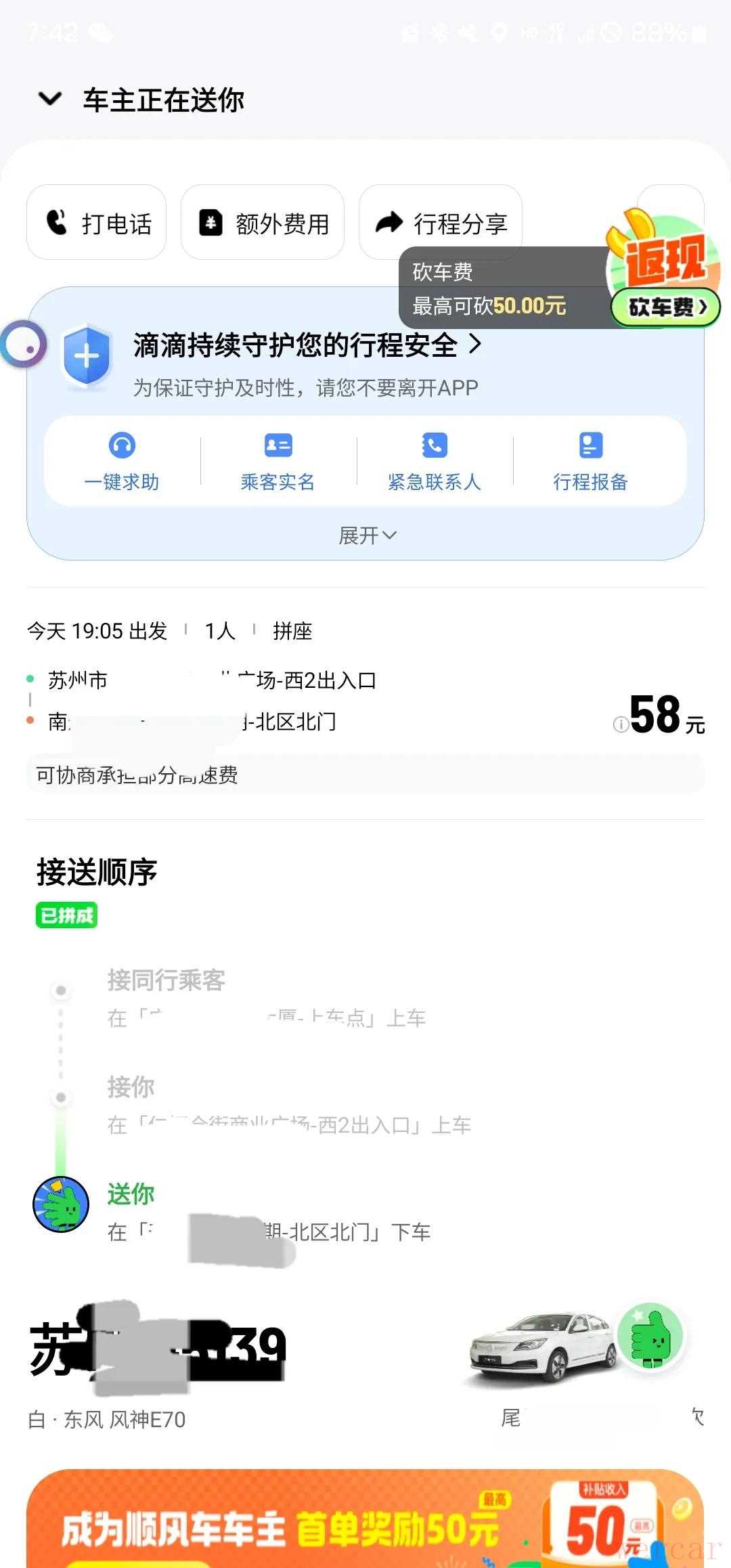 此前朋友乘滴滴来找我时,曾夸赞司机素质高、车内环境好。于是这次往返苏州,我都果断选择了滴滴顺风车。尽管它的车费比其他平台稍贵,但想着“一分钱一分货”,便觉得物有所值。可谁能想到,去程的良好印象,竟成了回程噩梦的铺垫。