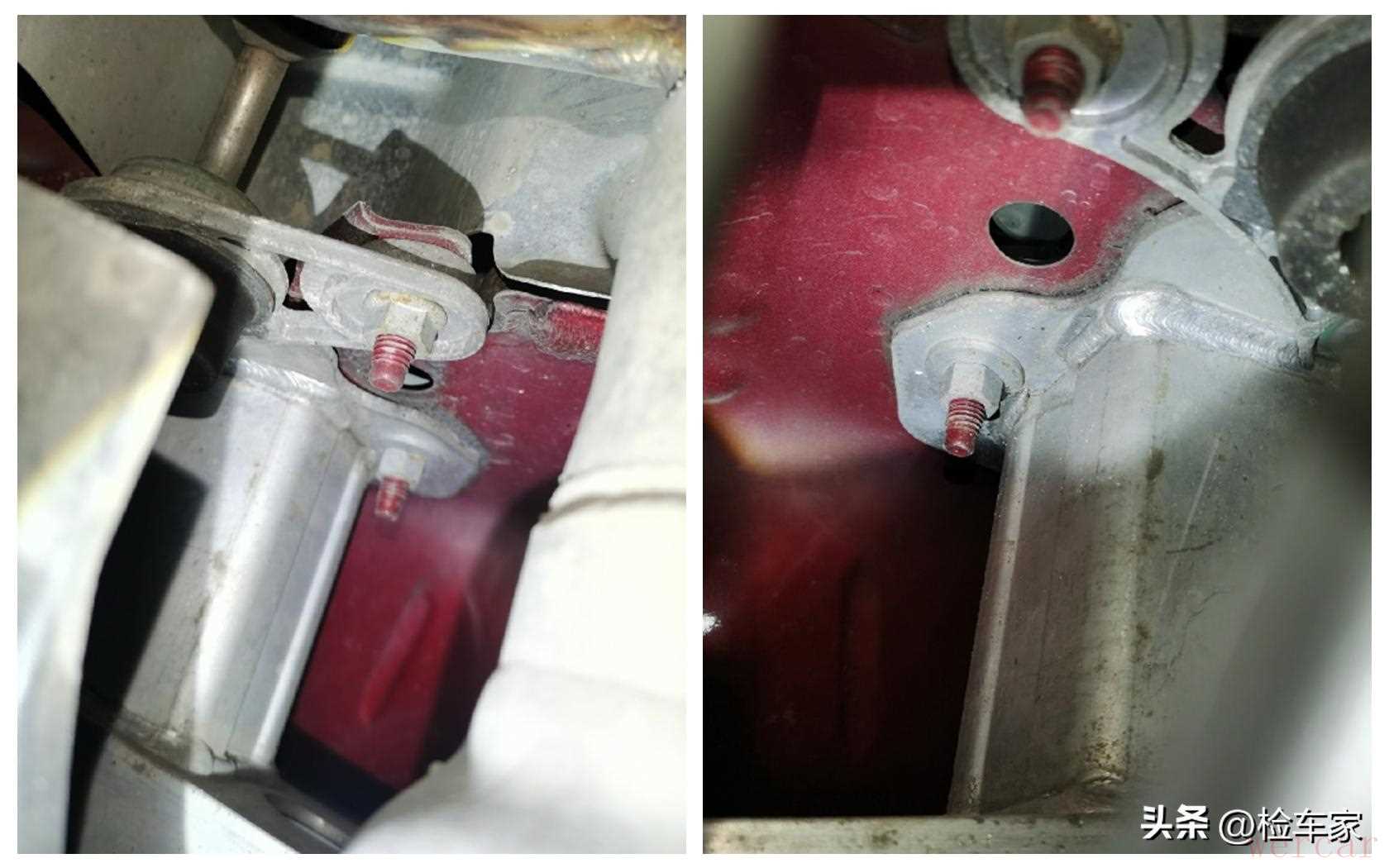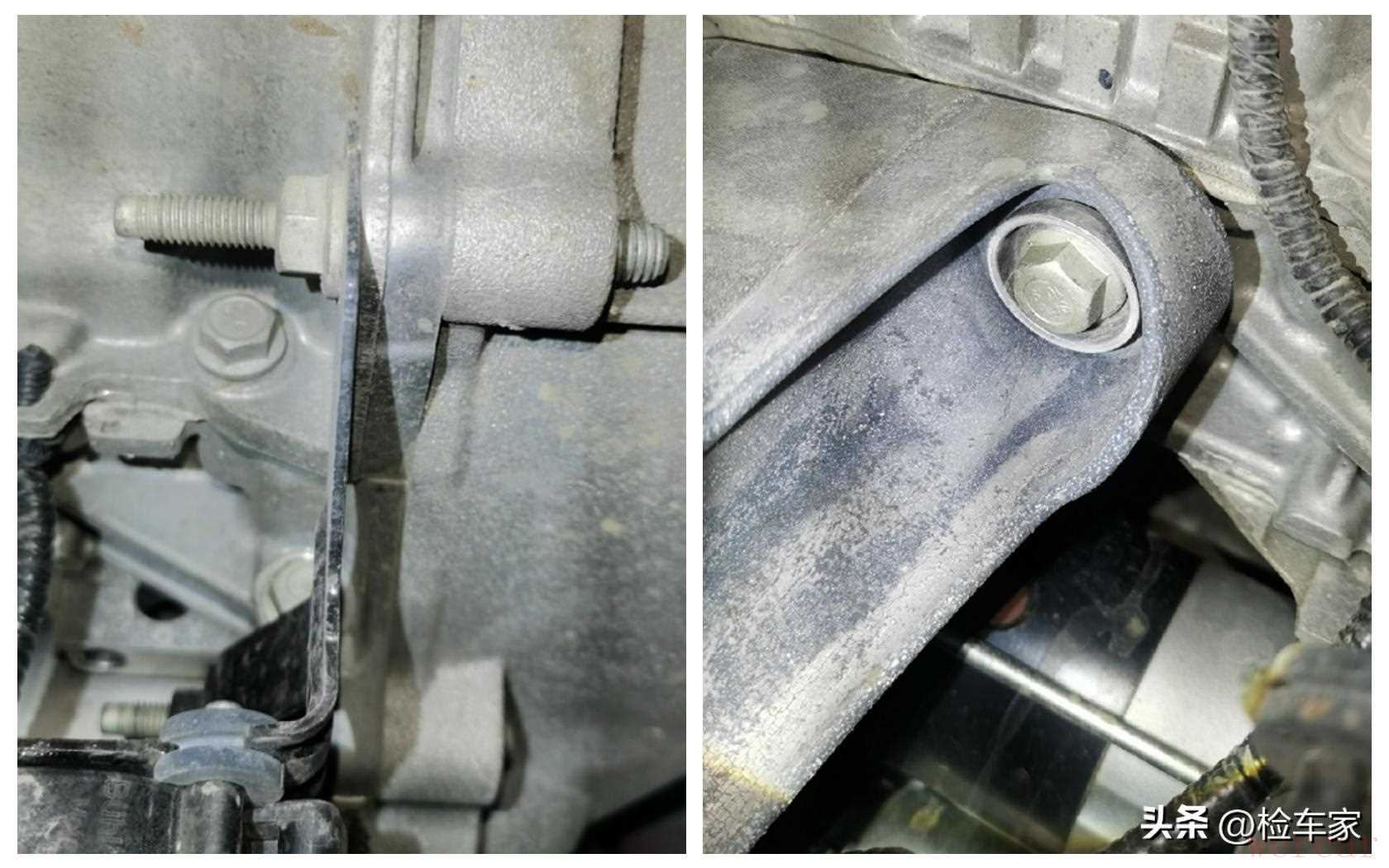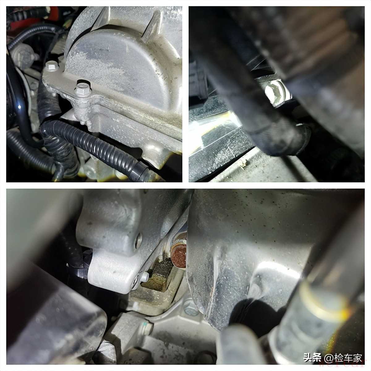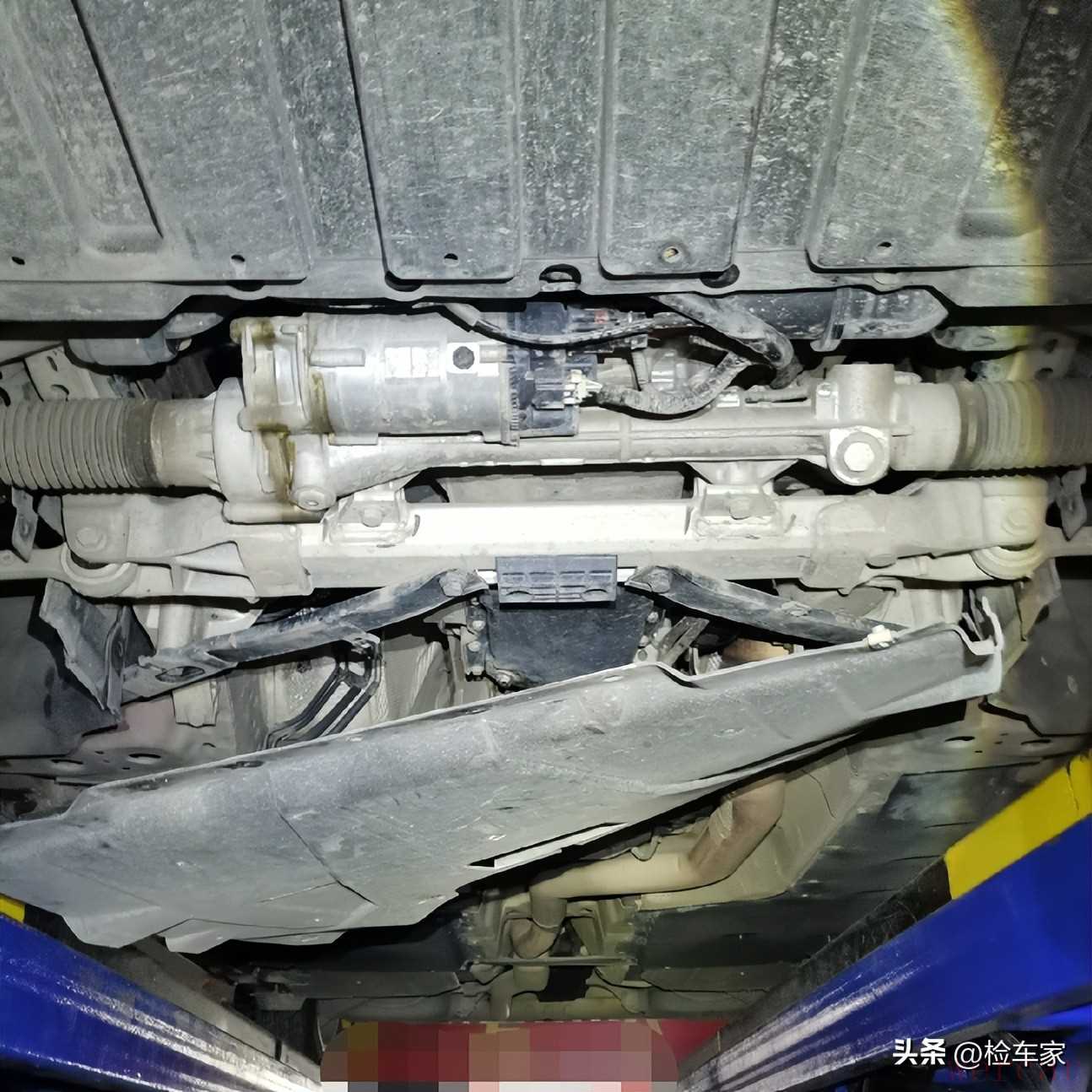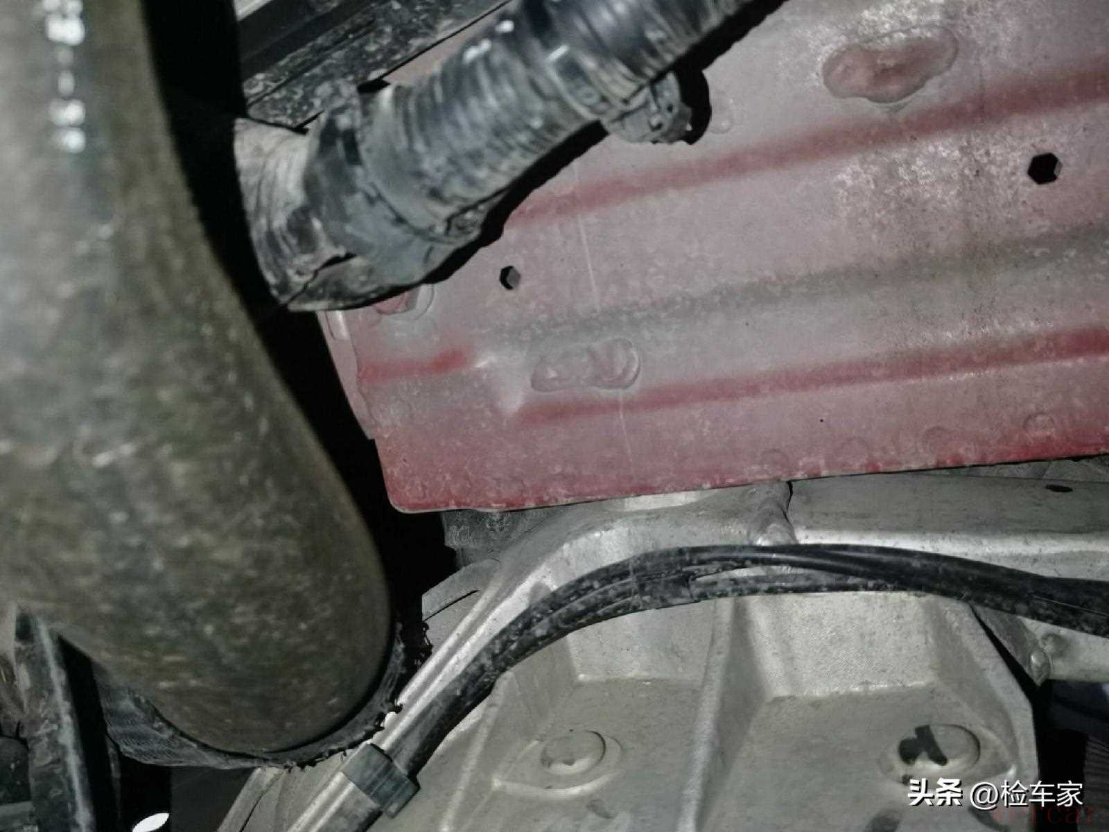 发动机底部情况还是非常好的,没有发现漏油情况,发动机变速箱链接螺丝没有拆装,机脚和油底壳也没有问题。再结合此前上部的检测,可以判断,发动机变速箱是无吊装无维修的。买二手车,这三大件还是非常重要的!