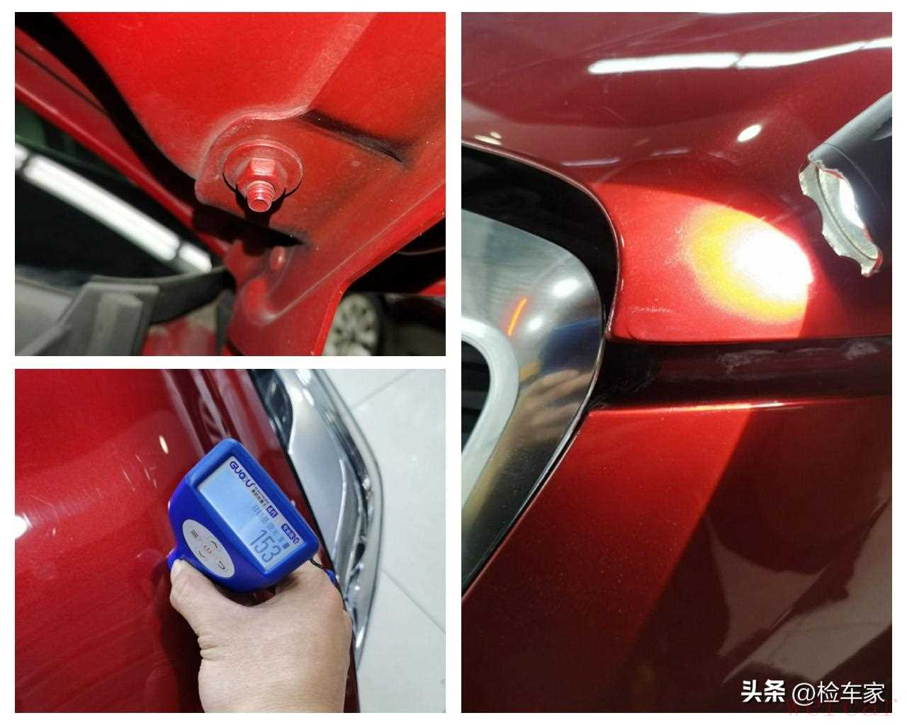 我们还是按照步骤仔细检查,先来看看机盖的情况。铰链是没有拆装的痕迹,漆面也只有150多,但是在仔细检查了机盖边角后,还是能发现有流漆的存在,说明还是做过喷漆修复的。不过鉴于没有钣金的存在,也就大体可以判断没有经历大碰撞了。