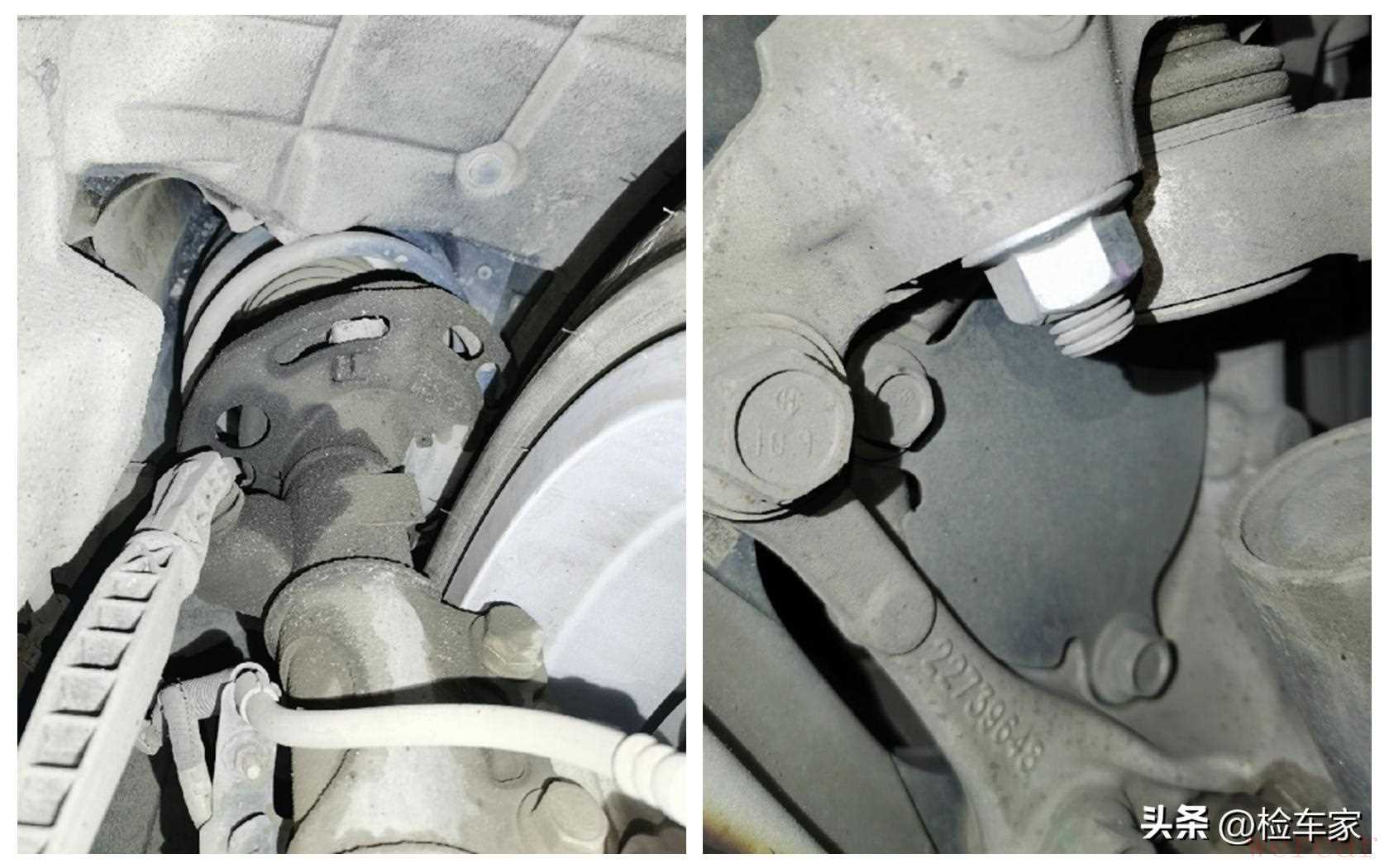 四轮悬挂部分,虽然没有拆装,但是比较可惜的是右前减震器存在漏油情况,估摸着也抗不了多久了,还是建议更换一下。