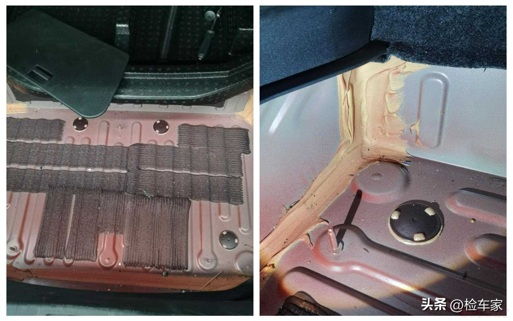 车尾和车头一样,因为互相追尾的概率比较高,所以我也是把能拆的饰板都打开看了看。后围板备胎仓没有发现变形痕迹,原车胶线也没有发现异常。到这里外观也就检测完毕了,除了一些修复外就没有结构件受损的情况了,整体情况还是很不错的。