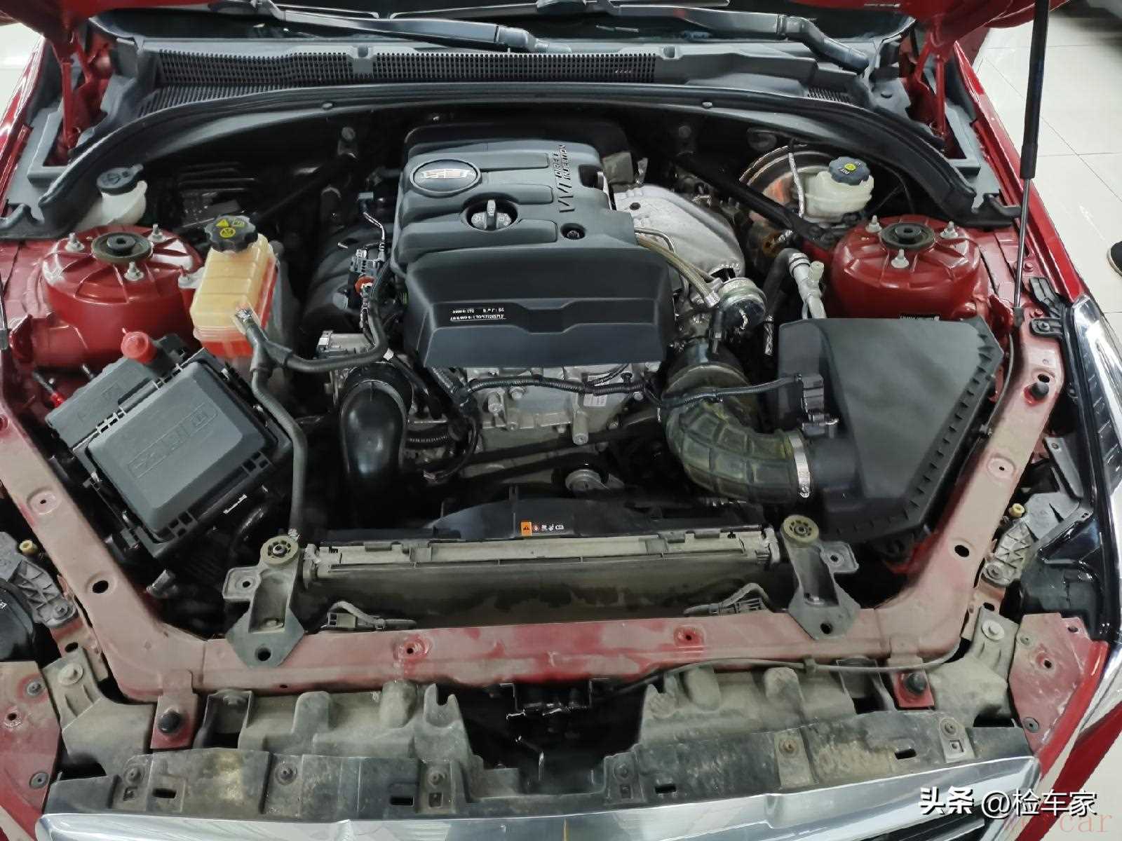 围着车检查完一圈后又来到了发动机舱,这车我准备检查发动机的情况了,侧面有点轻微渗油,不严重的话可以不用管它。气门室盖以及进排气歧管没有拆装痕迹,因此可以排除分解维修发动机的可能性,按时保养一般可以保证20万公里无大修,除非质量问题或者人为原因。