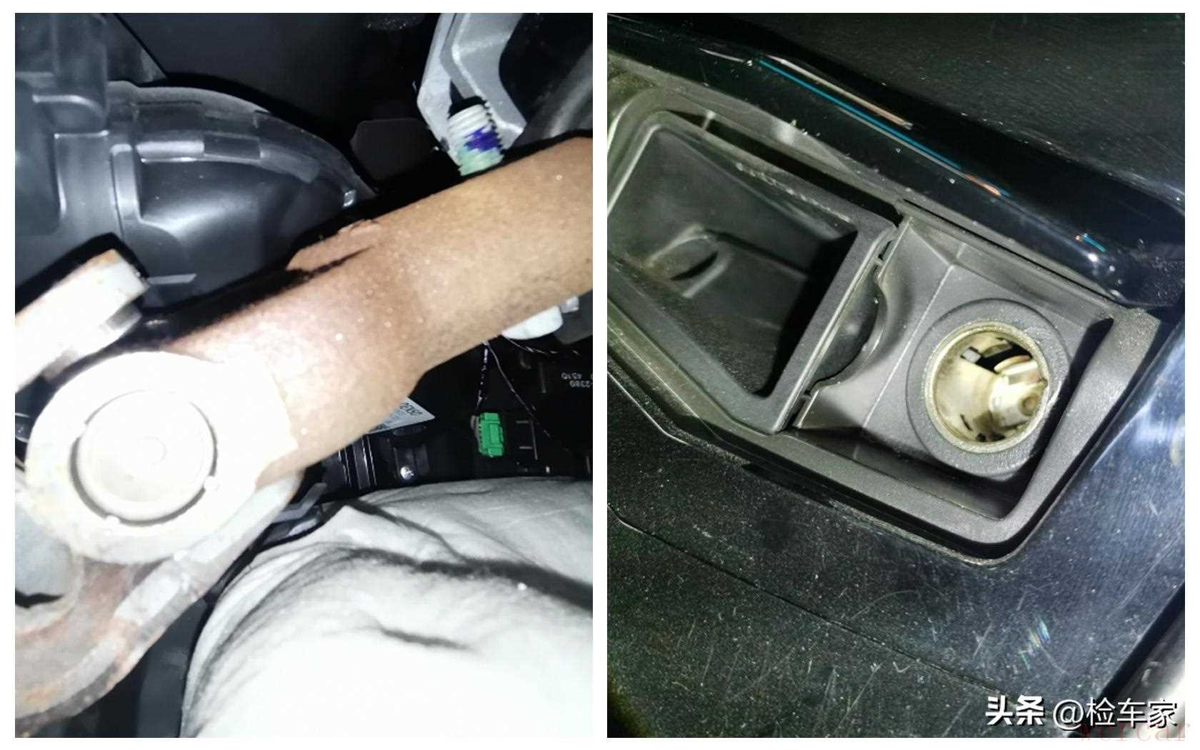 仪表台内部骨架以及点烟器这些地方也都是比较干净的,泡过水的车一般会有明显的发霉味道,黄绣泥沙水渍都是从一些小缝隙,以及不好修复的地方来检查,内饰也会大面积的拆装。
