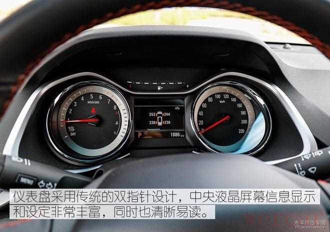 仪表盘采用传统的双指针设计,中央液晶屏幕信息显示和设定非常丰富,同时也清晰易读。