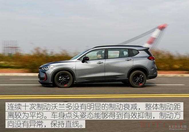 这是测试的路况是新铺装的柏油路,整体路况非常平整,当时气温约在29℃左右。我们进行连续十次的制动,沃兰多制动效果并没有明显的衰减,只是制动盘会冒出一丝丝青烟。整体制动过程非常稳健,方向也能保持稳稳的直线。同时悬架能够有效抑制车身点头。整体制动距离非常短,甚至达到了豪华的水平。