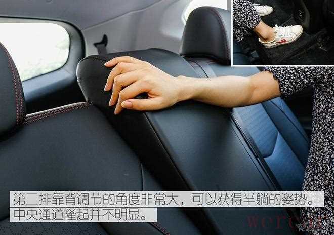 第二排靠背调节的角度非常大,可以获得半躺的姿势。中央通道隆起并不明显。