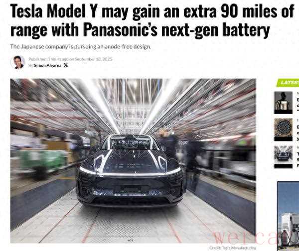 松下力推新型大容量电池,特斯拉Model Y续航再升级,轻松突破145km增程挑战