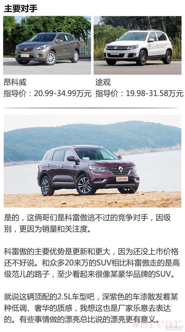 对科雷傲来说,最重要的竞争力慢慢的变成了差异化,因为市面上大家都有的东西太多了,在数量和质量上如何去取舍并不是每个厂家都已经明白的。方向上主打城市,但别忘了科雷傲和奇骏同平台依然有着不错的越野通过性。