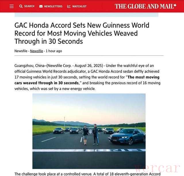 操控巅峰破吉尼斯纪录,品质卓越夺第一!雅阁实力不容小觑