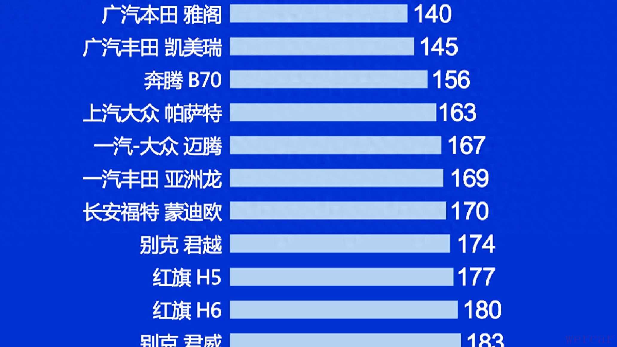 相比之下,平均值以下的8款车型则面临更多质量挑战。雪佛兰迈锐宝XL以195分的评分位居该区间首位,北京现代索纳塔则以212分的最高分垫底,显示出质量稳定性方面的不足。