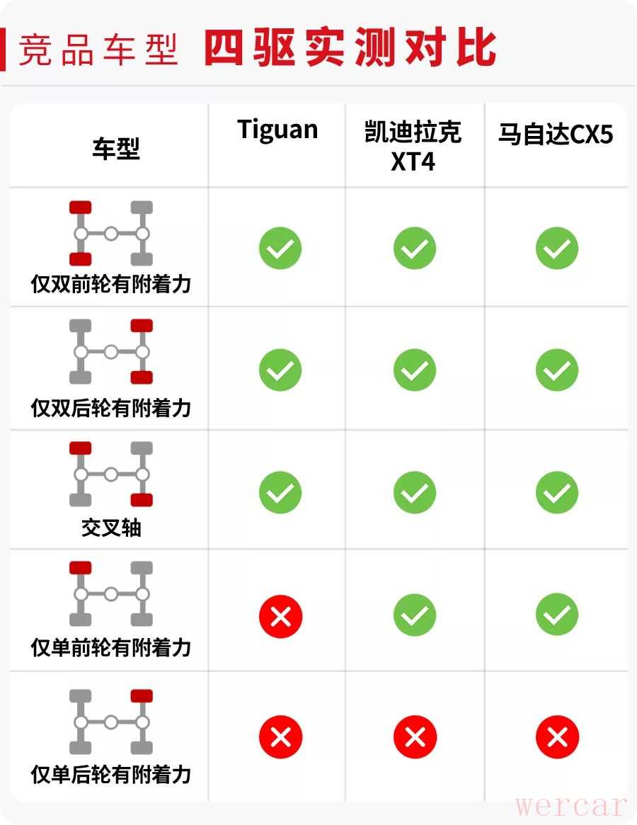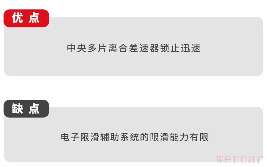 实测的Tiguan四驱车型采用的是大众4MOTION全时四驱系统,中央差速器由一套多片离合器组成,前后桥均为开放式差速器,轮间限滑完全依靠电子辅助系统。