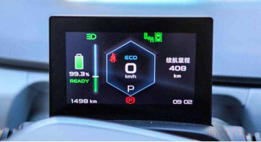 正前方的液晶仪表盘虽然尺寸有点小,但可显示的数据可是真不少!像当前车速、剩余电量、消耗电压啥的,也是一样没落的都给整齐全了。之前这块小屏放在几何A身上总觉得不太协调,是因为它的方向盘尺寸太大;如今放在几何C身上,结合着小巧的方向盘,看着就舒服多了。
