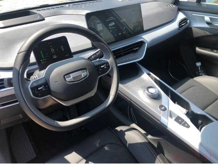 熟悉几何A的同学们,应该对几何C的这套车内造型并不陌生。两辐式的方向盘手感小巧,握感也很舒适,方向盘上的多功能按键操作起来也很顺手。冷色调的内饰颜色,虽然和其他竞品不同,没选用什么红内、棕内的配色,但低调的冷色调处理,还是更加凸显稳重和居家的。