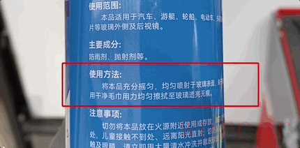 它的使用方法就更简单了,直接把防雨剂喷在玻璃上,再用毛巾擦拭均匀,等待2~3分钟再用另外一块干毛巾擦干净就行。