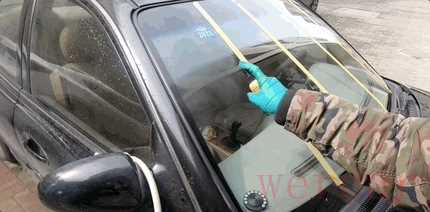 我先用洗车泡沫洗完玻璃后,往玻璃上淋水。