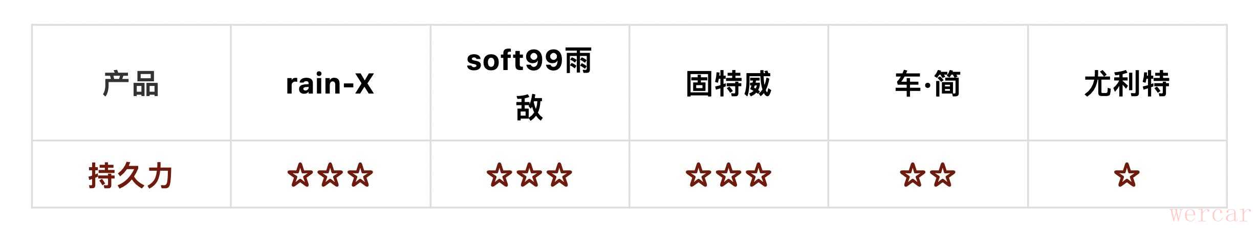 持久力最好的是rain-X、soft99雨敌、固特威这3款防雨剂。