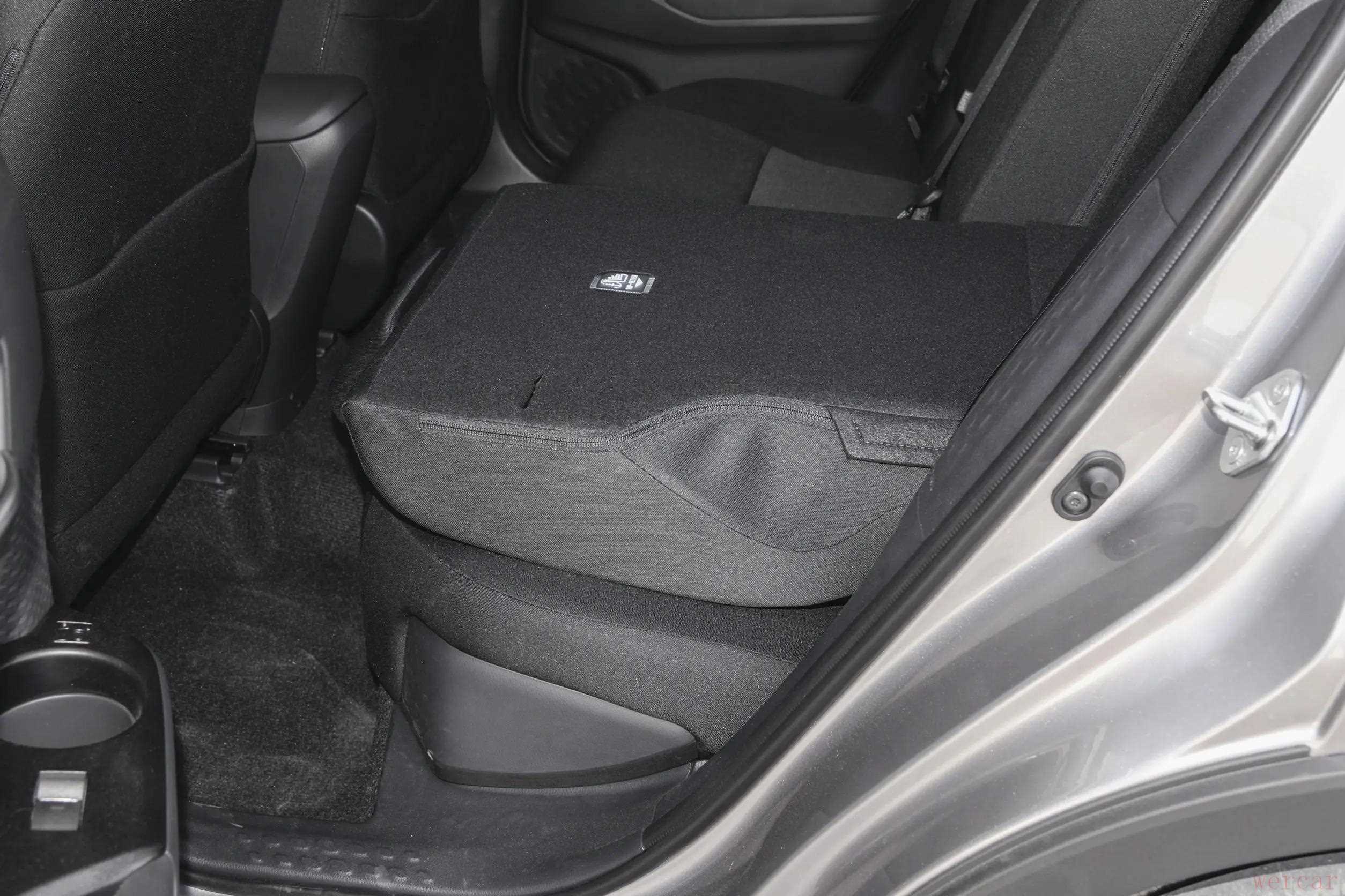 后排空间的空间表现一般,乘坐3个人的话,会有些拥挤,好在座椅舒适度不错,设计有3个头枕,可以比例折叠放倒。