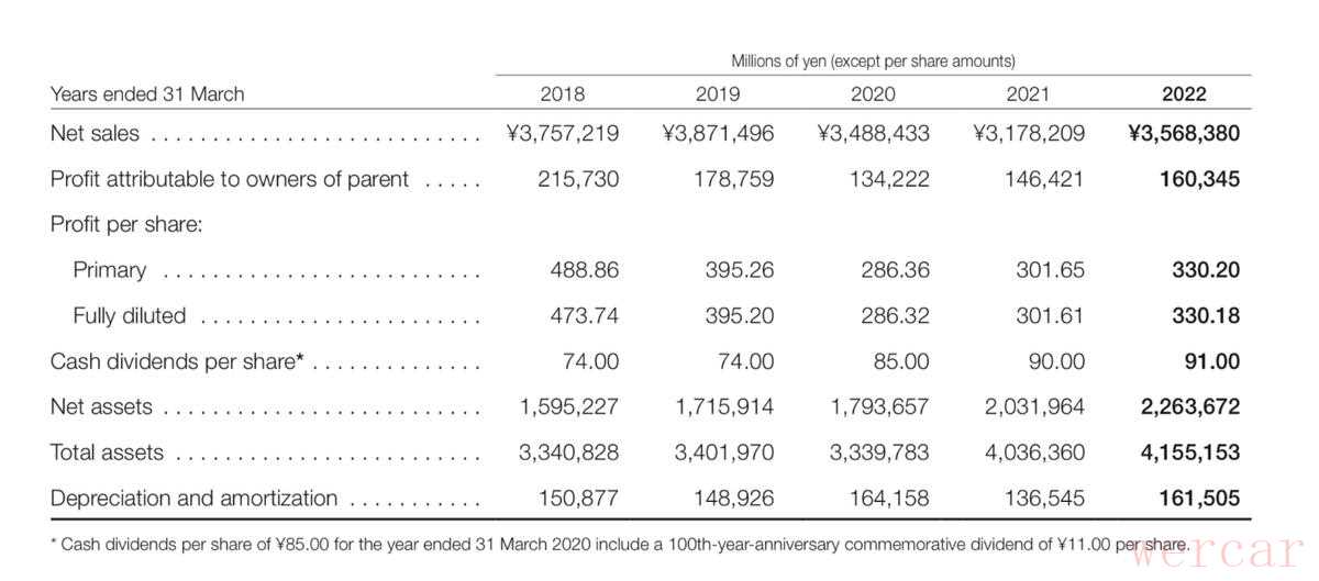 这是铃木去年(2022)的财报,记录了2018年到2022年的财政状况,其中我们可以看出铃木公司的净销售额、母公司拥有人应占溢利在2018年至2022年间有所波动,但整体呈现出稳定的趋势。而且公司的资产总额在这几年间呈现出增长的趋势。