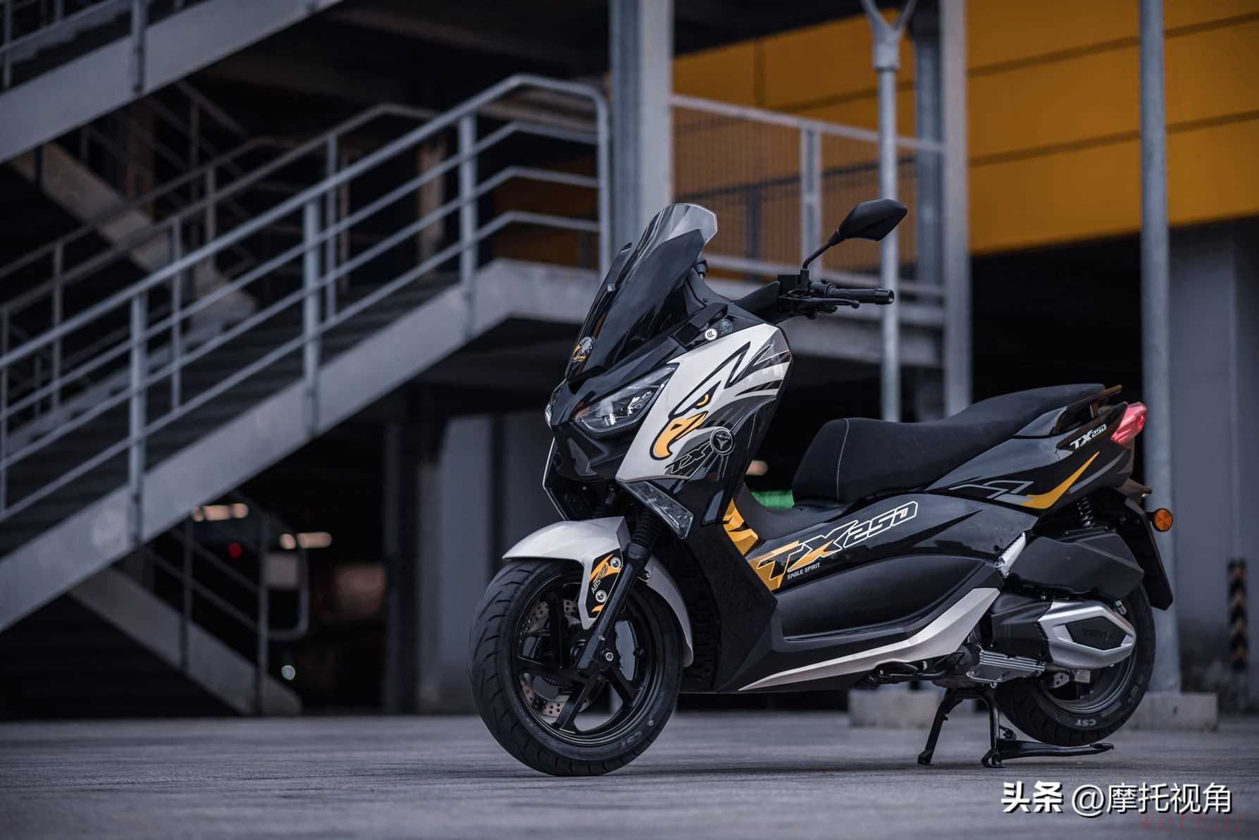 其实,250踏板的配置都大差不差,如果非要我选一条喜欢巡弋250的理由,我觉得还是外观设计和造型。三阳踏板的外观原创度都很高,棱角分明、线条犀利,看起来机甲风格很足,车身比例也很协调,是非常标准的大踏板造型,比TX250、荣250这类小型250踏板看起来饱满得多。