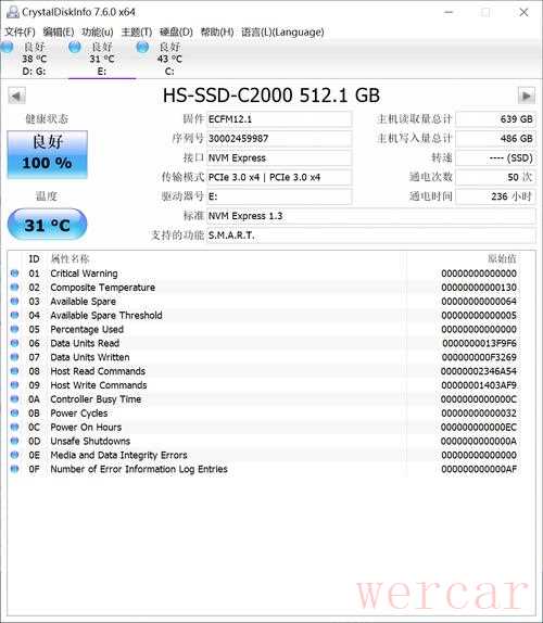 512GB版本识别容量为476.94GB,也同样是主流水平。