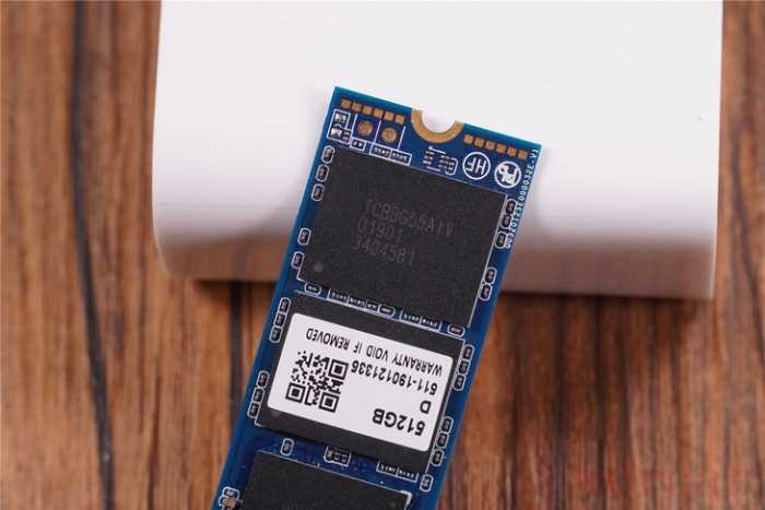 NAND颗粒来自东芝,为64层3D堆叠,我们手上这块512GB版本的单颗粒容量为256GB。