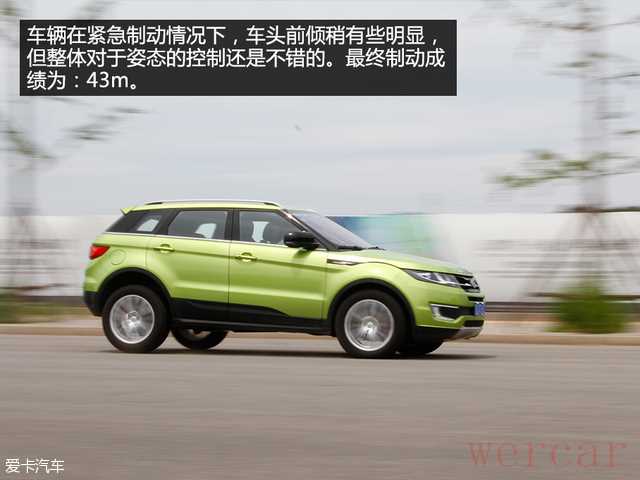 制动方面,陆风X7给人的感觉是刹车有些偏软,车辆前倾稍有些明显,不过也算是在正常水平。