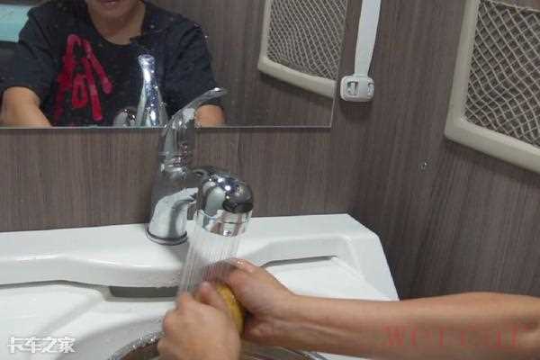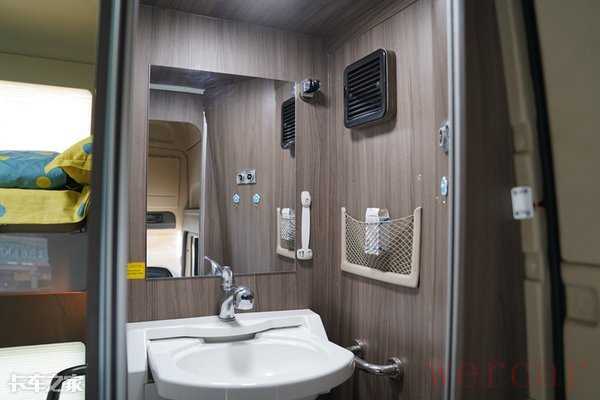 “而且这辆车还带有用原车的洗手间,洗菜择菜直接在洗手间里面就能完成,要是像没有这个配置的车,洗菜还要挪到车下,夏天还好要是冬天,寒风一吹别说洗菜手都伸不出来,但是这台JH6+生活舱就完全不用担心这些问题,车上热水凉水都有,简直方便太多。”