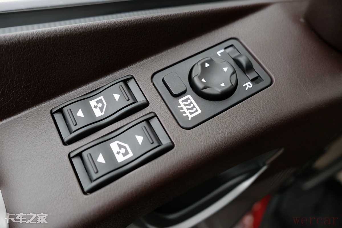 车门板上集成有多项调节功能,如中控锁、电动后视镜调节、后视镜加热和车窗升降控制等功能,非常方便实用。