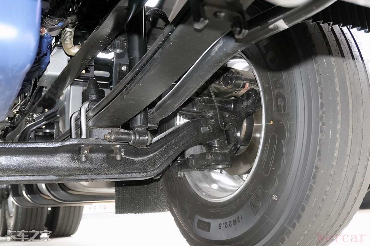 在底盘的设计上,该车的车架高度为300×80×8mm,采用435升级冲焊桥,速比为3.7。悬架是采用前后均为钢板弹簧少片的设计,有2/3和3/4两种形式可选。