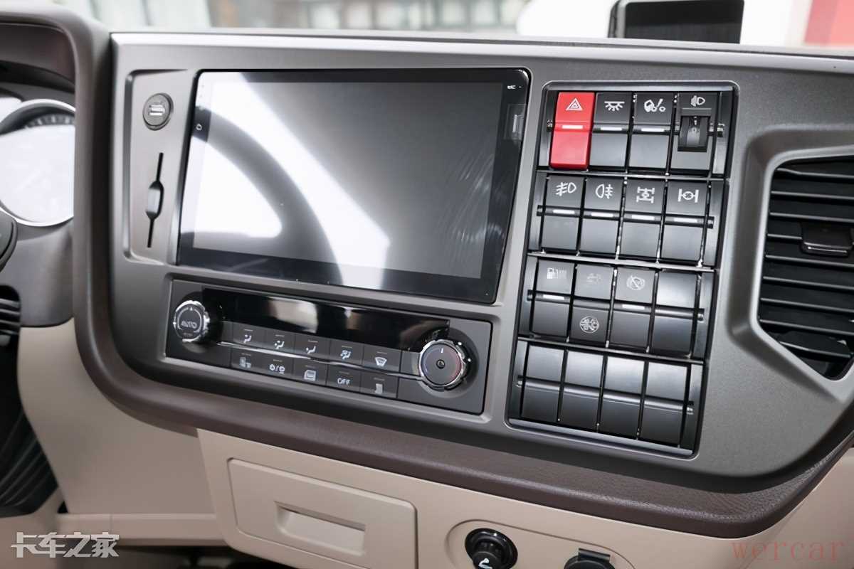 中控部分的控制模块相对比较集中,采用旋钮+按键并用的控制模式。而标配的大尺寸中控屏更是引人注目,支持蓝牙、车载导航、车载WiFi以及车队管理系统等功能,既方便使用,又能为车上人员带来行车乐趣。