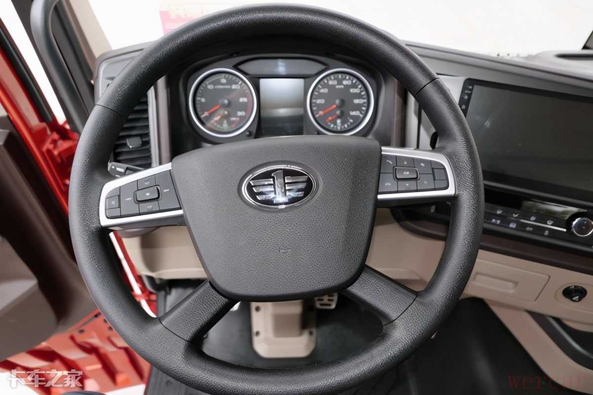 方向盘采用了经典的四幅式设计,“一汽”味十足。多功能按键区域集成有多媒体音量、接打电话、多媒体菜单、定速巡航等功能,极大地减少了卡友在驾驶过程当中手离开方向盘的可能,进一步提升行车安全性。