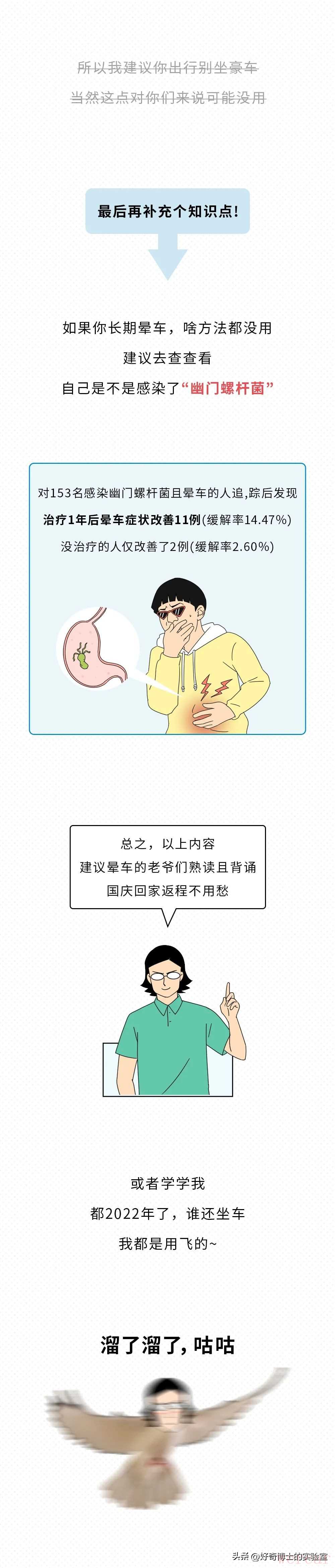 如果长期晕车,啥方法都没用,建议去查查是不是感染了幽门螺杆菌。