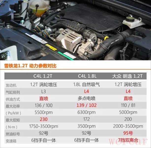 首先我们先从发动机的账面数据上来看,1.2T发动机(136马力/230牛·米)的最大功率已经很接近自家的1.8L自然吸气发动机(139马力/172牛·米),但最大扭矩输出范围更广,相对来说更实用。这款1.2T发动机之所以有这么好的数据表现,不单单因为它是款涡轮增压发动机,更多的还是因为加入了缸内直喷、双VVT等等主流技术,相信这款发动机将会是东风标致雪铁龙的主力机型之一。