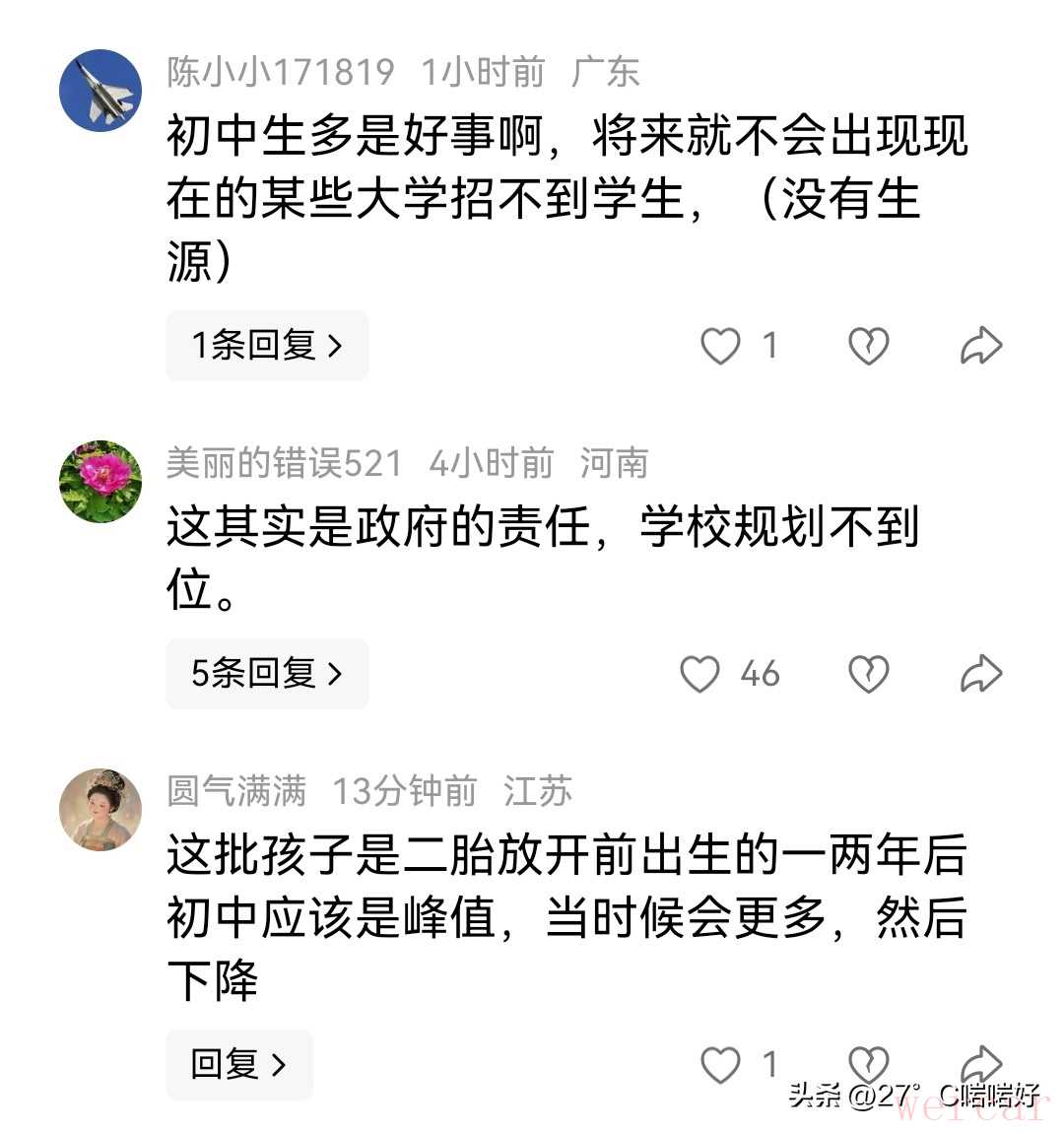▷广东网友,初中生多是好事啊,将来就不会出现现在的某些大学招不到学生,(没有生源)