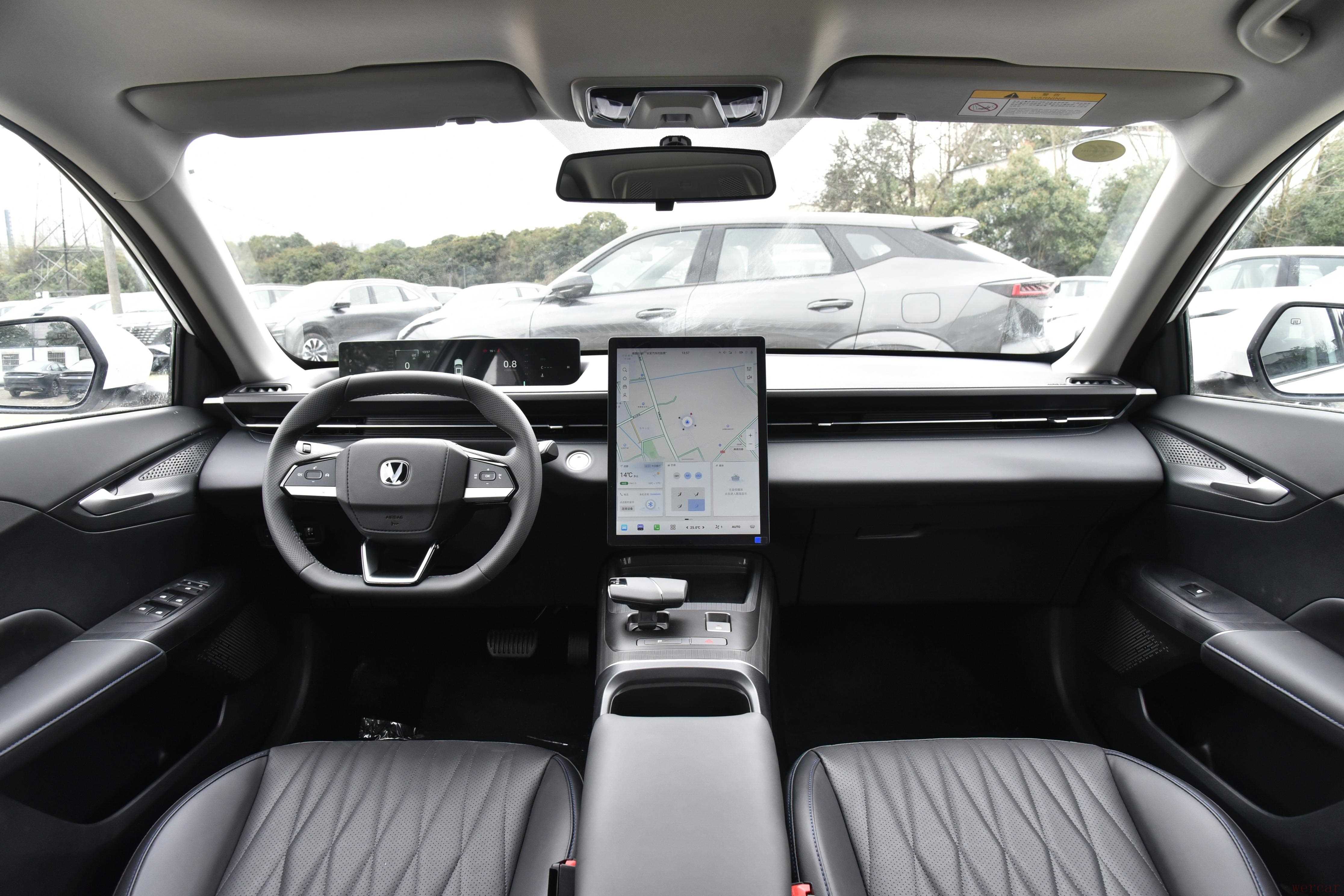 逸动的内饰风格分为两种,和逸动PLUS略有区别。整体设计偏年轻,比如13.2英寸竖屏中控、10.25英寸的“带鱼屏”仪表、平底方向盘、贯穿式空调出风口、游艇式档把,这些元素更像新能源车的思路。