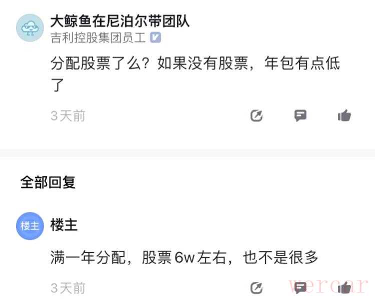 有吉利员工回复说,分配股票了么?如果没有股票,年包有点低了