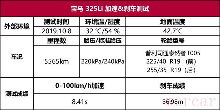 "宝马325 Li的性能测试亮点(通常的表现):"