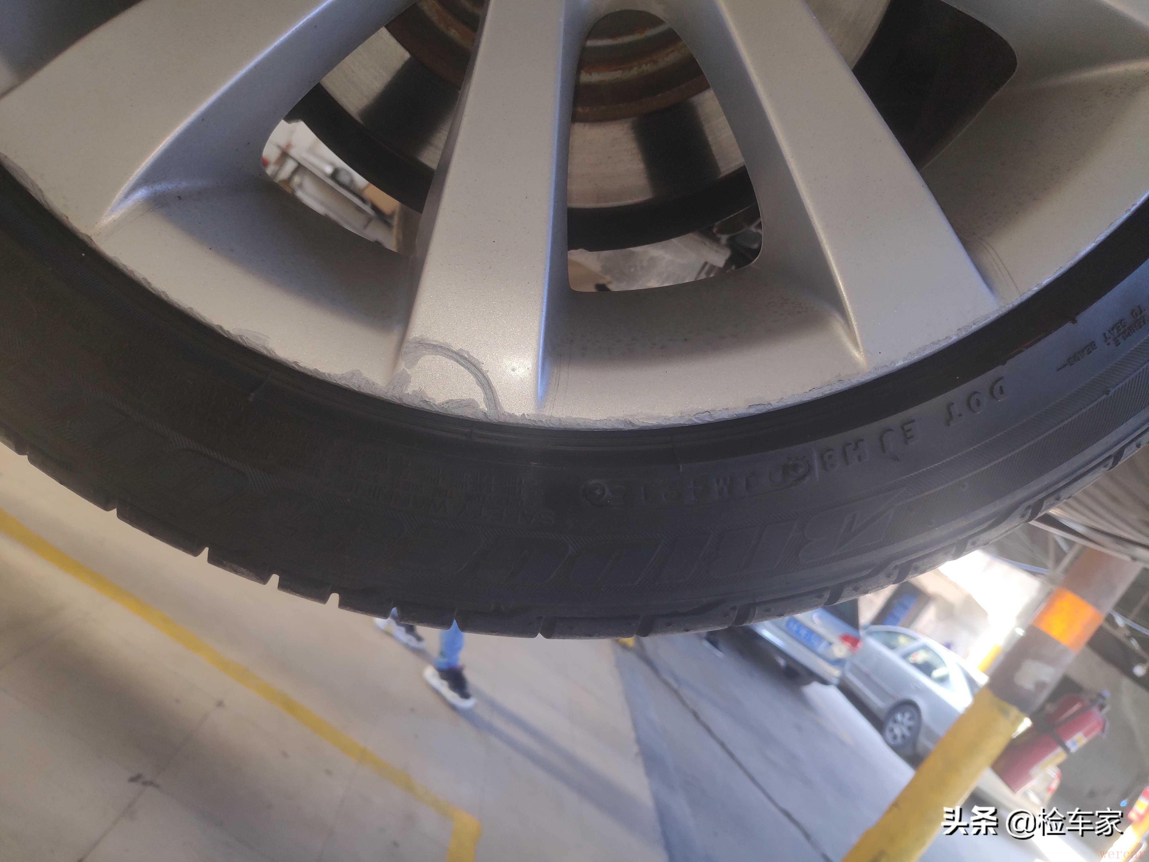 全车四条2015年更换的轮胎磨损程度不是很严重,和目前公里数相符,只不过右前轮胎装反了,倒不影响使用。四条轮毂均存在刮擦,在意美观的话可以进行喷漆修复。