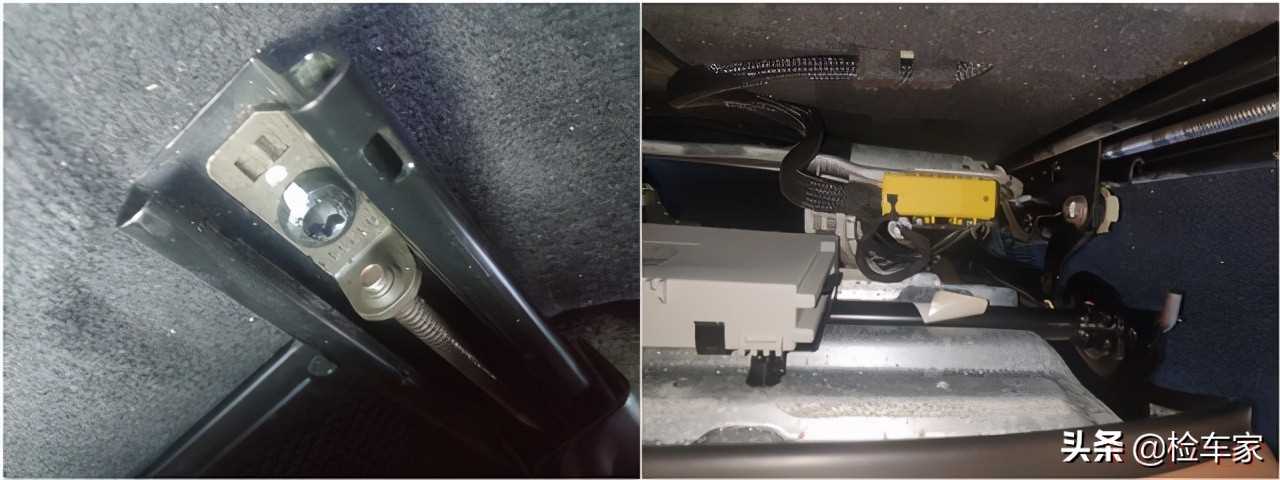 车内座椅固定螺丝同样没有发现异常,螺丝无拆卸错位,底部金属骨架无异常锈蚀打磨现象,缝隙内没有泥沙存在,检测到这里基本可以排除车子泡水的嫌疑,我也松了一口气,但也不能马虎,接着往下看。