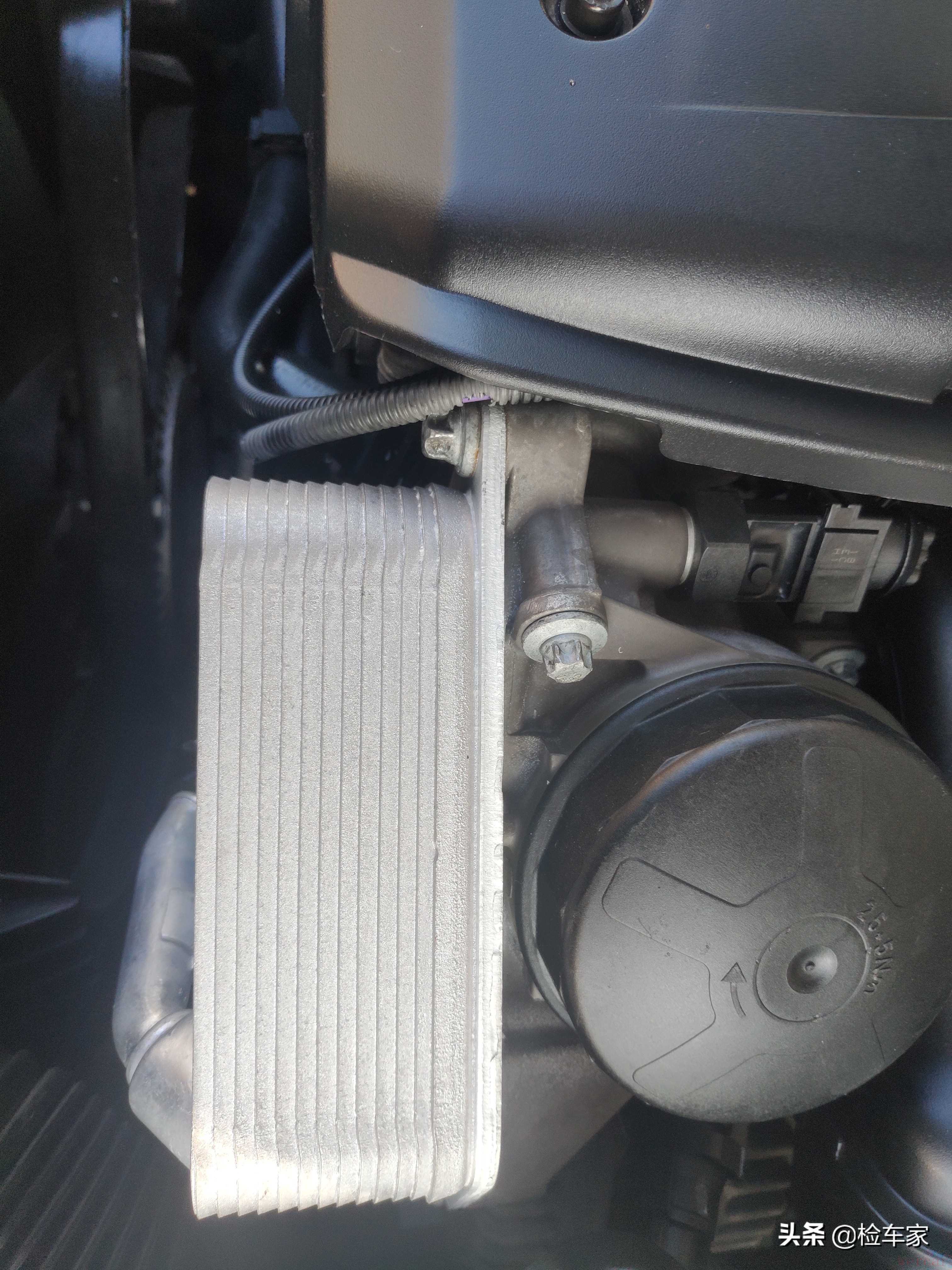 机油格座旁边的机油散热器存在拆卸痕迹,对于上了年限的宝马来说,机油散热器会出现漏油现象,从而进行正常的维修拆卸,问题不大。
