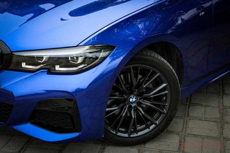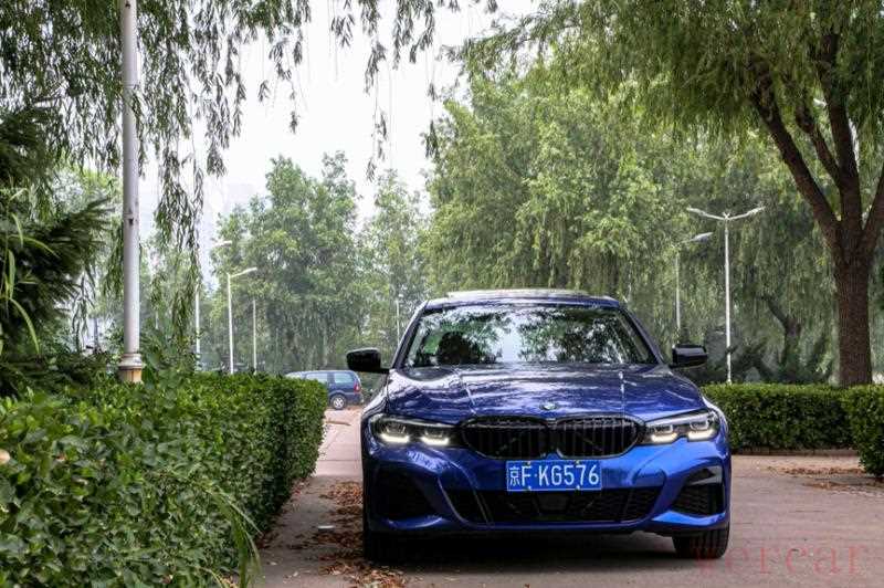 全新3系的外观相比于上代变得凌厉了许多,进气格栅有所增大,但没有像大哥7系那样明显,内部带有主动进气功能,在降低风阻的同时,也能让发动机尽快进入工作温度。全黑的进气格栅是M运动耀夜套装的特征之一。本次的试驾车为波尔蒂芒蓝颜色,这也是全新3系的主打颜色。