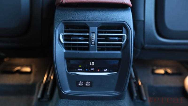 后排中央扶手处带有空调调整面板以及两个USB-C充电口,上代长轴车型的“老板键”并没有出现在现款长轴车型中。