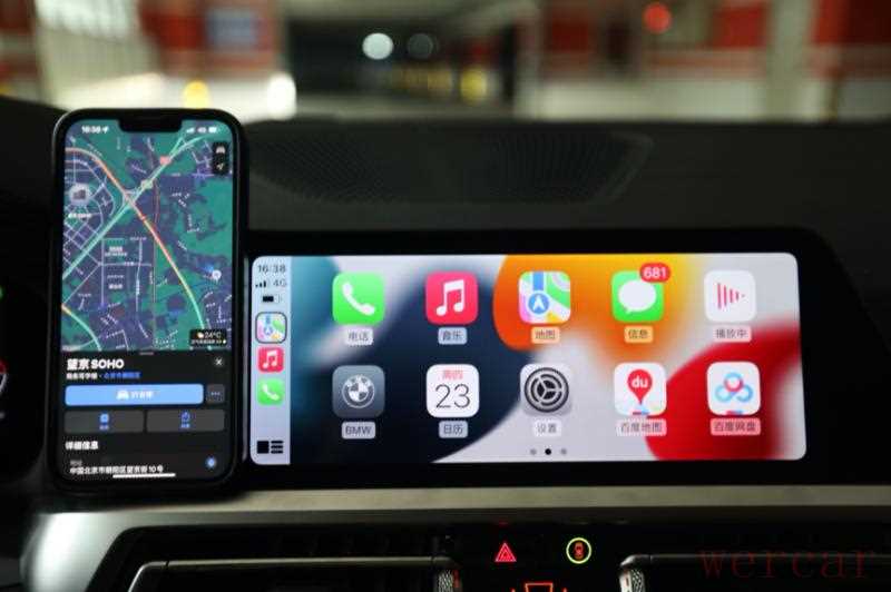 第七代iDrive人机交互系统也是为数不多的几个可以将苹果手机自带地图投射到仪表盘以及HUD上的系统,大大增加了CarPlay的实用性,希望之后国内常用的百度地图、高德地图也可以使用此功能。