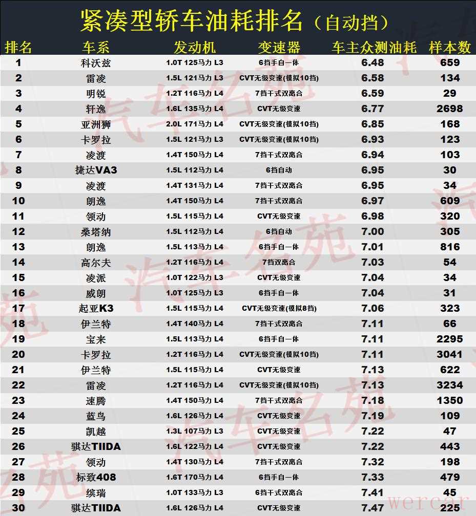 "表现突出的车型:" 像“排名第一”的车型通常采用先进的燃油喷射技术、轻量化材料、高效变速箱、混合动力或纯电动技术。